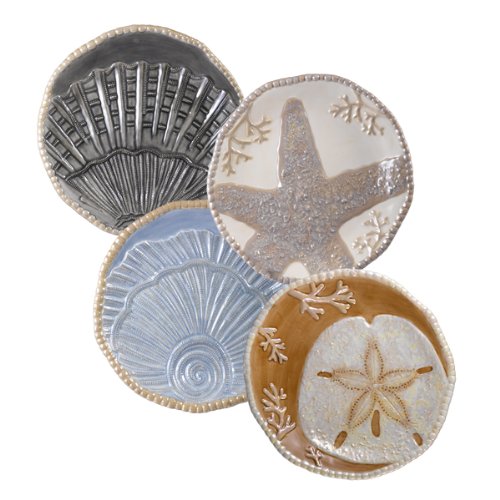 Grasslands Road Coastal Life Shell Sand Dollar Starfish 8-1/2-Inch Accent Plates Four Styles, Set of 4