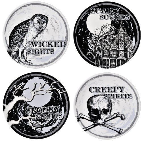 Grasslands Road Ghoulish Glamour Halloween 8-Inch Accent Plates 4 Styles, Set of 4