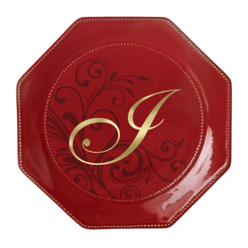 Grasslands Road Toile 8-1/2-inch Red octaganol monogram initial J accent plate