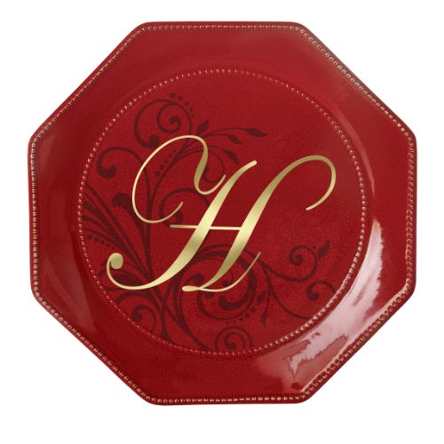 Grasslands Road Toile 8-1/2-inch Red octaganol monogram initial H accent plate
