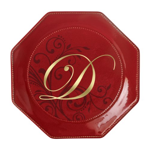 Grasslands Road toile 8-1/2-Inch Red Octaganol Monogram Initial D Accent Plate