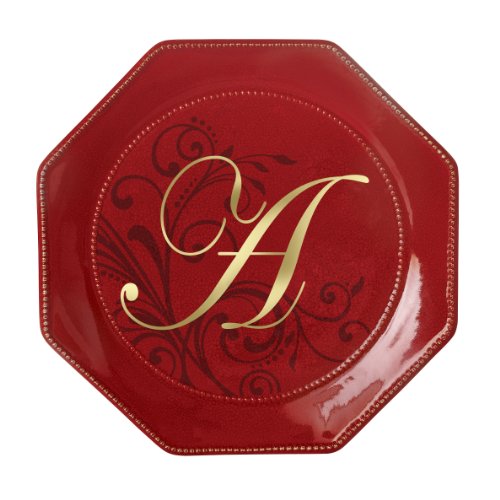 Grasslands Road Toile 8-1/2-inch Red octaganol monogram initial A accent plate