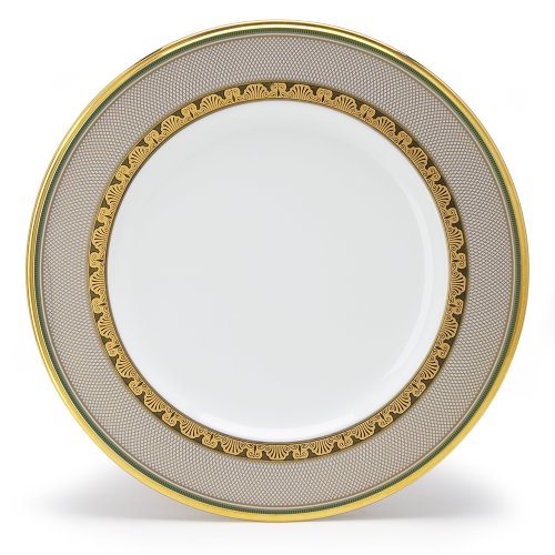 Fitzgerald features a wide rim of marbleized green with an outer band of smooth gold and an inner band of etched gold. Dishwasher safe on a fine china setting.