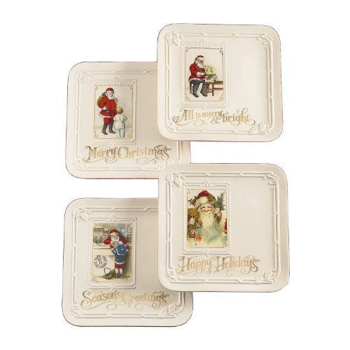 Grasslands Road Christmas to Remember Santa 8-5/8-Inch Square Accent Plates, Set of 4