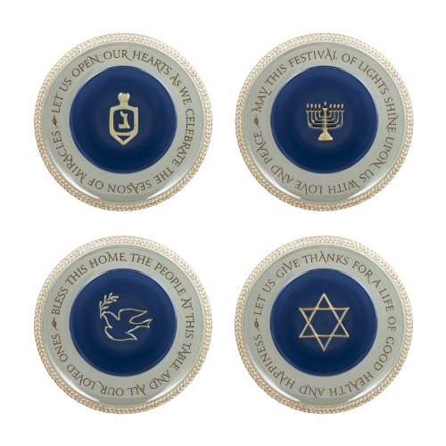 Grasslands Road Festival of Lights 8-1/4-Inch Hannukah Accent Plates with Stand 4 Styles, Set of 4