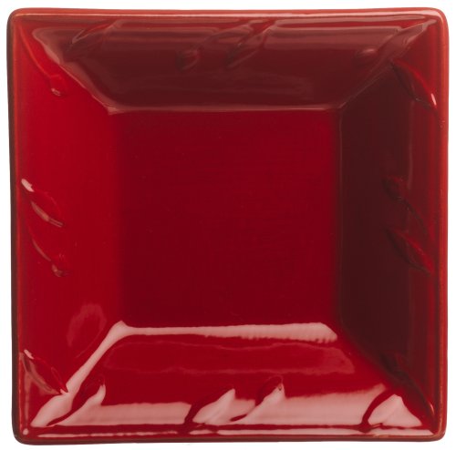 The Sorrento 6-inch square dipping plate in ruby is the perfect way to kick off a signature Sorrento collection. Equip a new apartment, home, even dorm room with the Sorrento collection. It’s a steadfast collection that is sure to please; all Sorrento pieces have the signature rim design and are available in an array of colors. With salad plates, bowls and a multitude of serving and cooking accessories, you can build your collection over time. The 100-percent lead-free stoneware is durable enough to withstand the microwave and dishwasher for years of everyday use. For entertaining or quiet nights at home, the Sorrento collection is made to last.