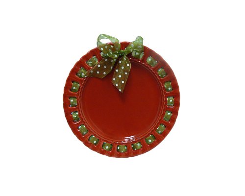 Terramoto Ceramic, by Coastline Imports, is known for the simplicity of Polka Dots and Stripes. These coupled with the graceful shapes of the bowls, pitchers and more, make for a kitchen and table pantryware collection that will complement any home. This new solid color accent plate with ribbons extend the Terramoto Ceramic range.