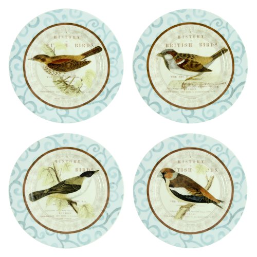 Prima Donna Designs British Birds Glass Plate Set of 4, 8-Inch