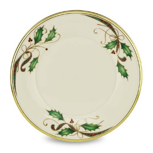 Sprigs of holly framed in gold create a festive look for this accent plate. The perfect addition to your holiday décor, the plate is decorated with the popular Holiday motif. Crafted of ivory bone china and rimmed in precious gold, it will enhance your holiday decorating and entertaining. Matching accent mug also available.